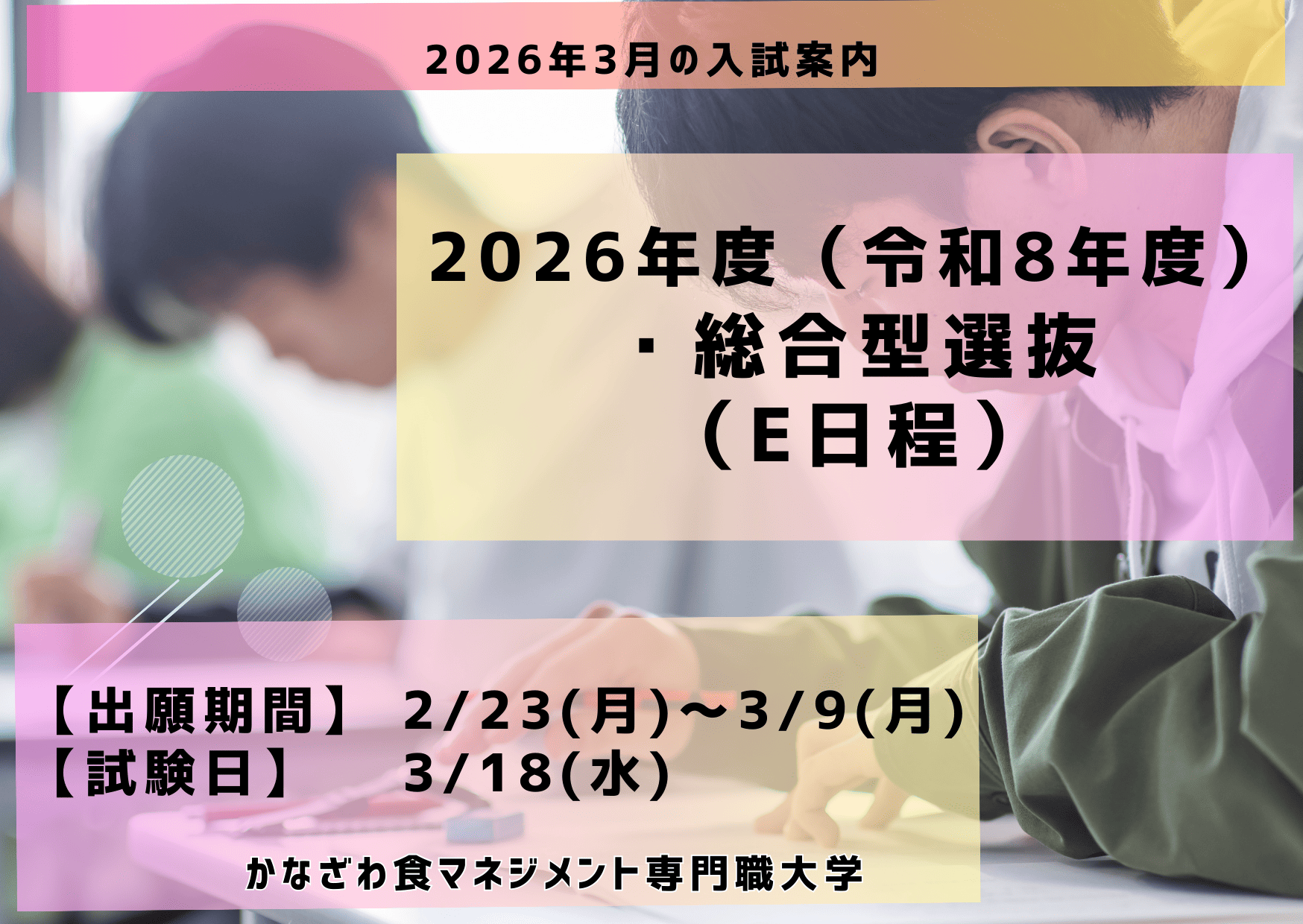 | E日程 | 2026年2月23日(月)〜3月9日(月) | 2026年3月18日(水) |